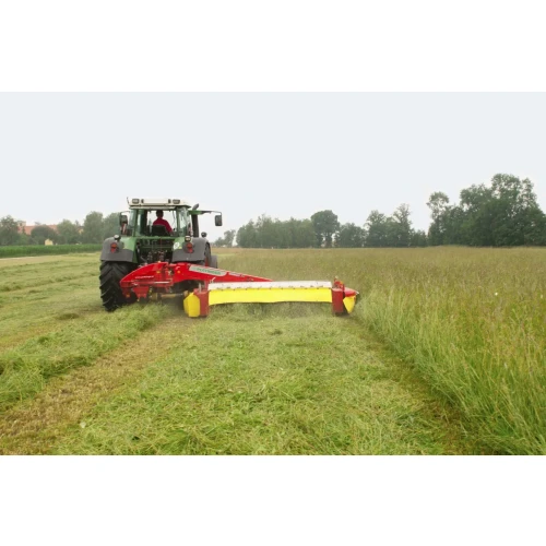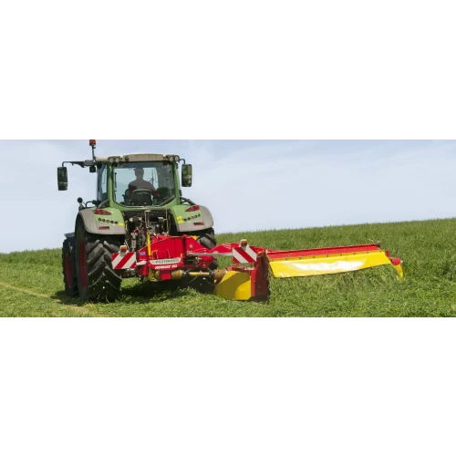 Senteropphenget på slåmaskin NOVACAT sørger for at knivbjelken avlastes jevnt i hele arbeidsbredden. Det reduserer effektbehovet – en stor fordel når slåmaskinen har stengelbehandler. Den store vandringen på +/- 22,5 grader gjør det mulig å slå under krevende forhold, på ujevnt underlag, i skråninger osv.